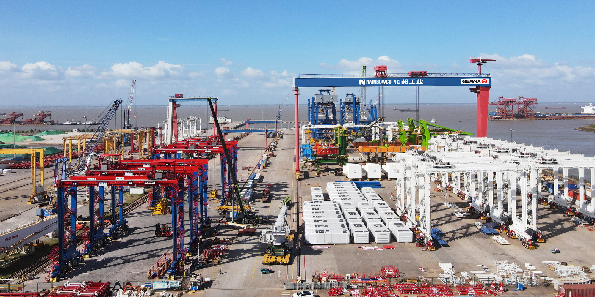 Covering an area of 450mu (300,000m2), with an annual production capacity of 200 units/sets of container port machinery